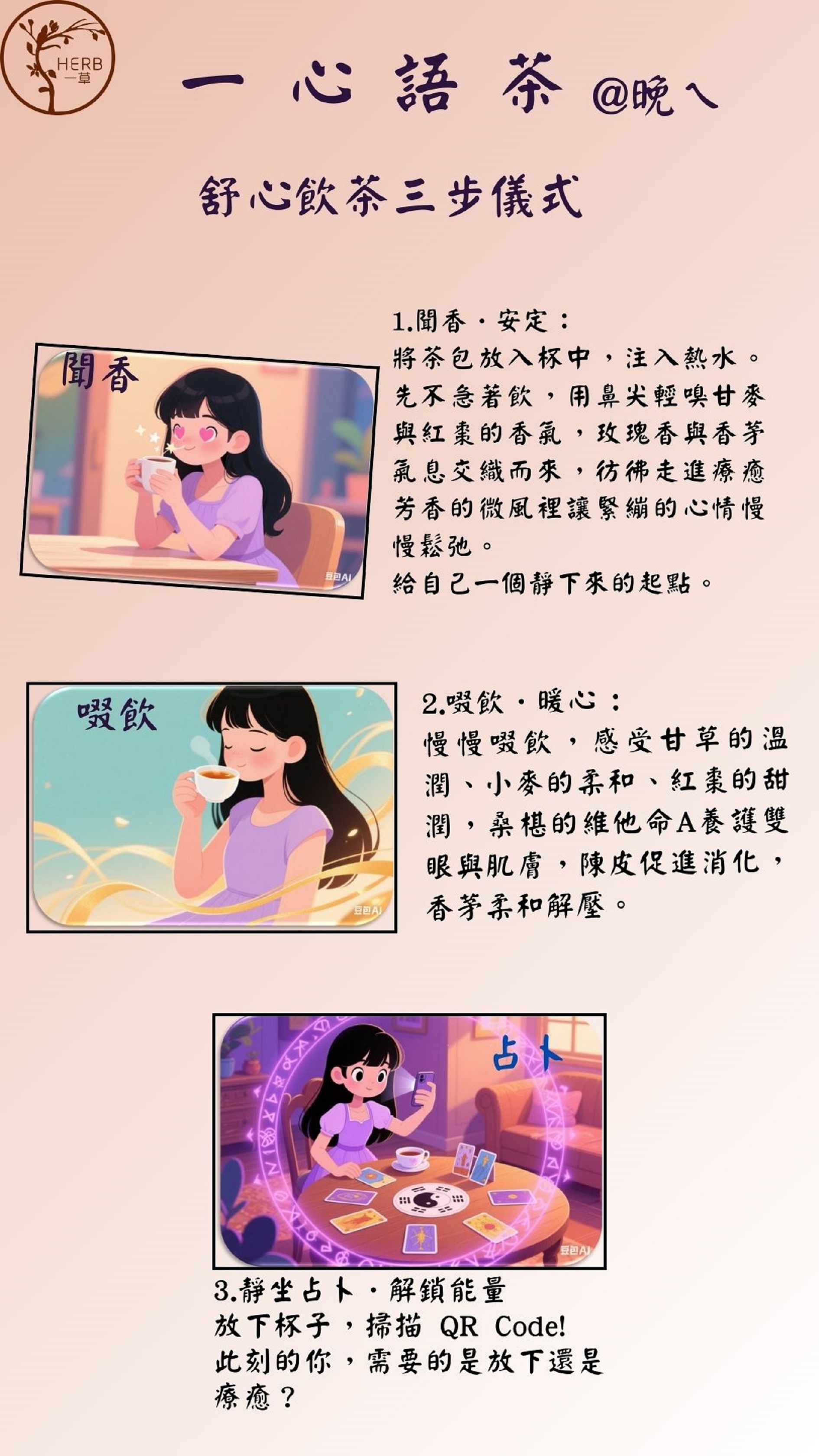 《一心語茶》以「草本養心」為理念,選用天然玫瑰、桑葚、甘麥大棗、